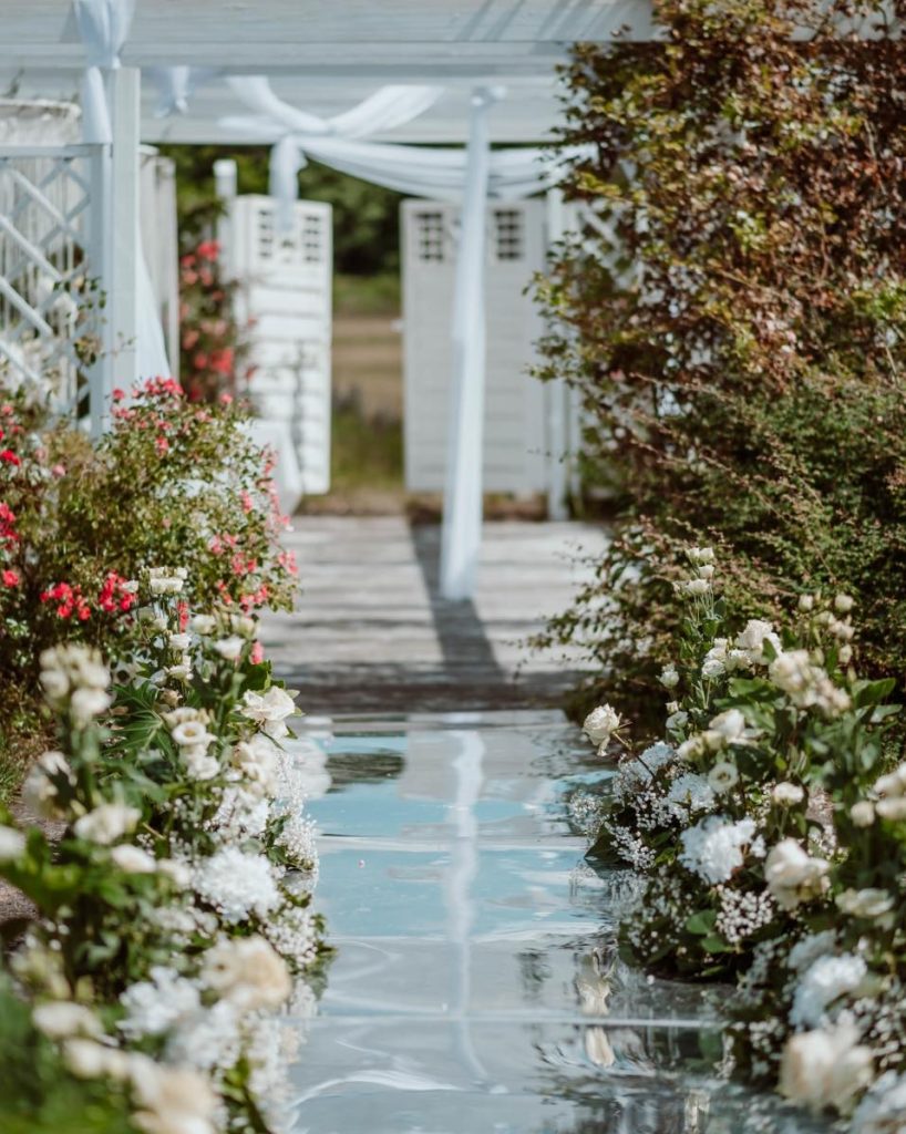 Stwórz piękne tło dla przysięgi, np. łuk z kwiatów, baldachim lub altanę.